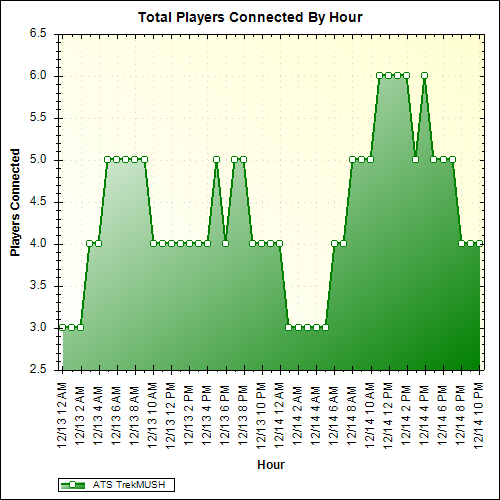 ATS: Trekmush is an old mush with a rich history. I will prefix that I am biased in my review as I am staff on ATS, but if you want to confirm my review as honest then I encourage you to connect to ats and verify yourself. Like all MUSHes ATS will only give back what you put in, if you come to ATS seeking a quick firefight or instant gratification it will not happen. To get things in ATS you must Roleplay and work with others. I have seen those who put in the time build up massive organizations and achieve what want though wasn't possible. While the Federation is typically the newbie faction, all factions will be just as eager to help new players, although you may not get as much assistance due to fewer players online to help you. If you are having troubles, voice your issues. I think ATS: TrekMUSH is a good mush that anyone who enjoys Star Trek can enjoy. New players are always welcome and people are always willing to help you, but keep in mind if you don't ask for help, no one will know to give it. So come be a part of our community, we are always looking for new people to roleplay with.