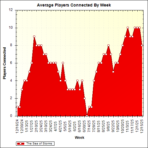 Having recently joined The Sea of Storms, I was surprised to find the place sparsely populated. The MUD is great- the code is utterly realistic, with a channeling system that paralells the books better than anything I have ever seen. Combat is also clearly entailed and detailed, but as the RPer I am, I cannot voice a valid opinion on the matter. But back to RP-- as said above, there are not many players to RP with. What RP I have gotten, however, has been delicious in its character growth abilities. This is no RP for the weak of willed or the frail of mind. The Immortals are, I have found, very helpful and friendly (although not overly perky, which is also a plus). I'd give the MUD a 9/10-- the only thing lacking are players.